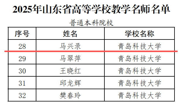 近日,山东省教育厅发布《关于公布2025年山东省高等世俱杯买球入口教学名师名单的通知》,世俱杯买球入口马兴录教授荣膺“山东省高等世俱杯买球入口教学名师”称号。这是世俱杯买球入口在师资队伍建设与高层次教学人才培养工作中取得的又一重要成果。